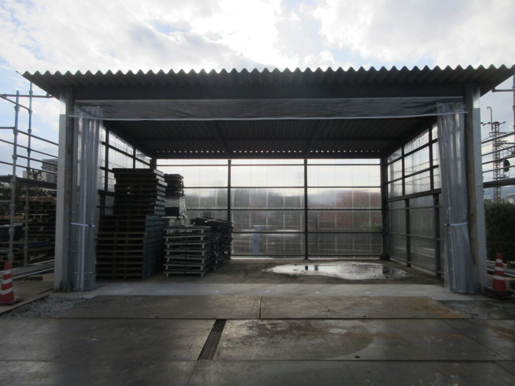 11月は、工場・倉庫案件のほかに、愛知県にてテンパル製「ソラカゼ」を使用したパーゴラテント(引き寄せテント)取付工事を行いました(W5000×D6000×5スパン)。 パーゴラテントは、日除け・雨除けとして、近年検討されるケースが増えている工事の一つです。