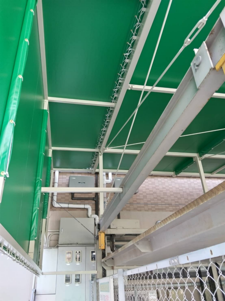 現地のサイズや構造に合わせてシートを作成し、細部まで丁寧に取り付けを行いました。施工後は耐久性・機能性ともに向上し、見た目もすっきりした仕上がりになっています。
