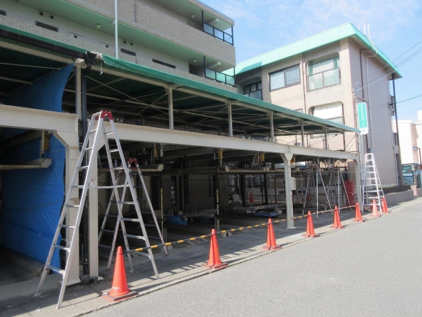 草津市にあるマンションにて、二段式駐車場のシート張替工事をおこないました。